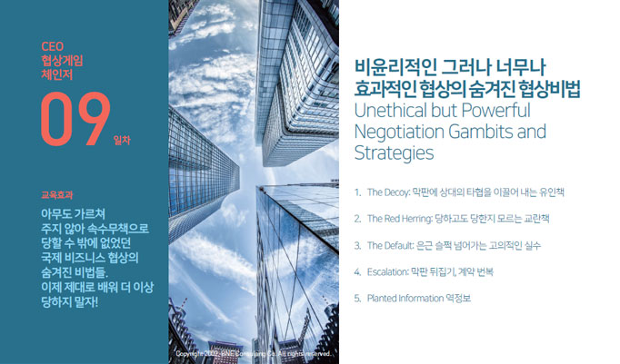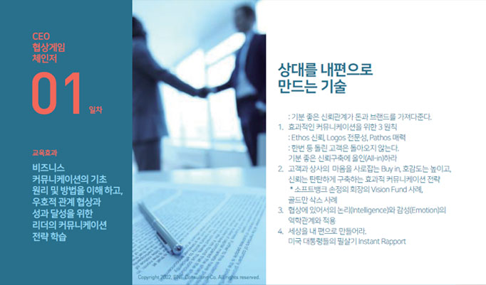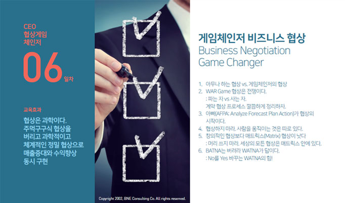 | 1 | 비즈니스 협상 게임 체인저 (Negotiation Game Changer) |